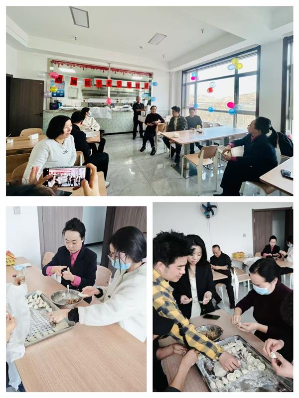 集團(tuán)領(lǐng)導(dǎo)班子成員也一同加入到包餃子的行列中,一邊包餃子一邊與年輕員工分享冬至習(xí)俗:“冬至不端餃子碗,凍掉耳朵沒人管。今天咱們多包點(diǎn),讓每個(gè)人都吃得暖暖和和!”
