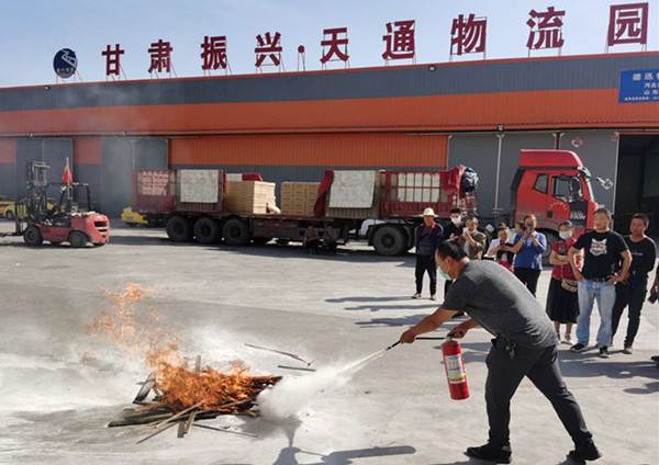 為積極響應(yīng)全國安全生產(chǎn)月“消除事故隱患 筑牢安全防線”主題,2020年5月21日,振興集團(tuán)安委會(huì)聯(lián)合億安消防培訓(xùn)中心組織甘肅振興?天通物流園商戶開展了消防安全演練活動(dòng)。
